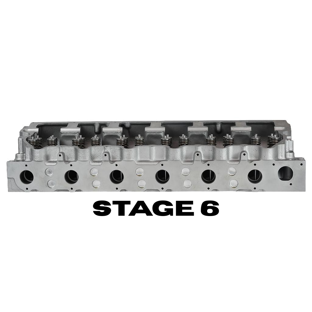 The Stage 6 CAT C15 Cylinder Head is the strongest option we offer, featuring CGI casting, Inconel intake and exhaust valves, and stainless steel fire rings.