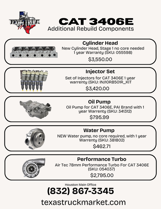 CAT C15 / 3406E Platinum Overhaul Kit | Texas Power SKU: 056159 The Texas Power CAT C15 / 3406E Platinum Overhaul Kit is the ultimate all-in-one engine rebuild solution, engineered to restore your Caterpillar engine to...Regular price $15,238.00Regular price $15,238.00 -