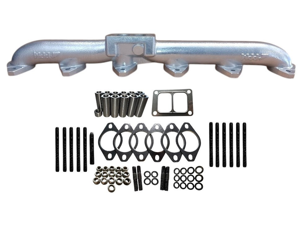 PPM Chrome Mid-Mount Exhaust Manifold for CAT 3406E / C15 / C16 – Includes Mounting Kit