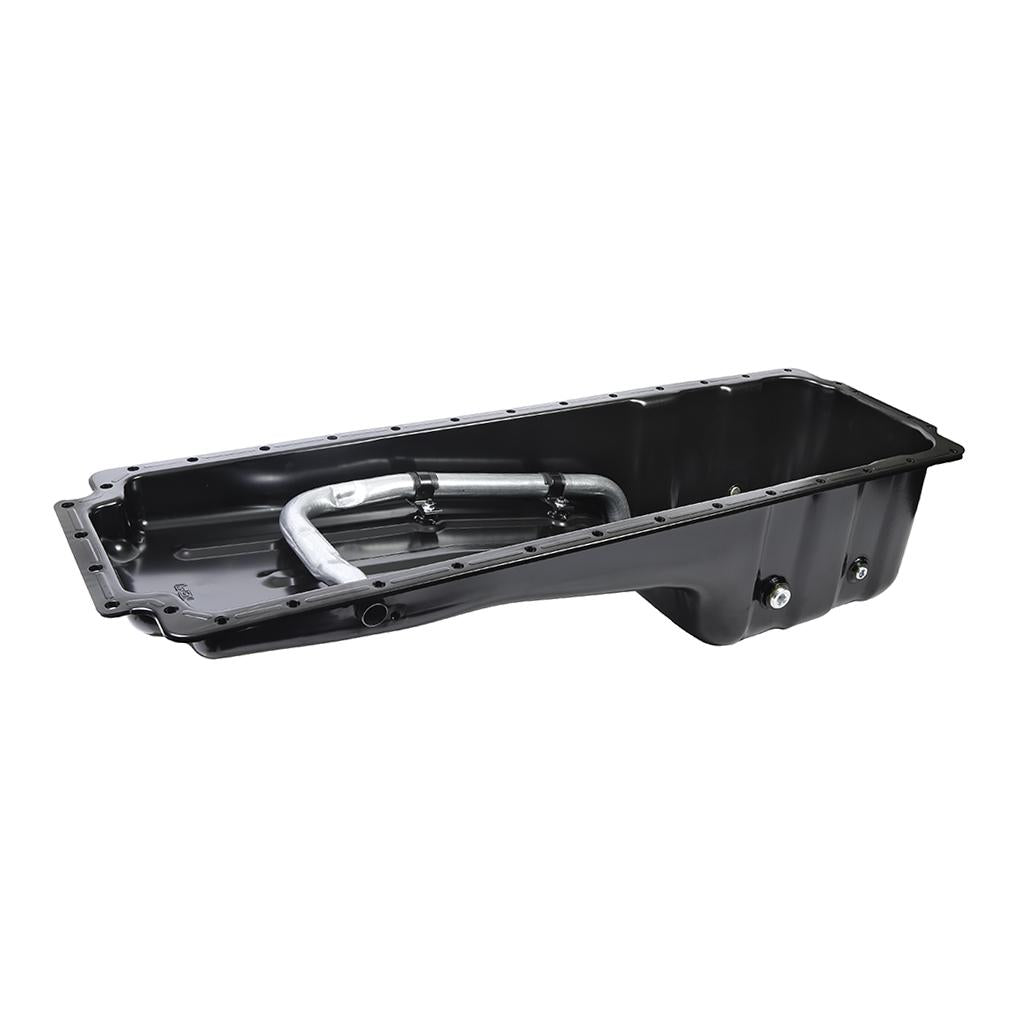 This rear sump engine oil pan assembly is made of steel, finished in black and fits Cummins 855 / N14 engines.