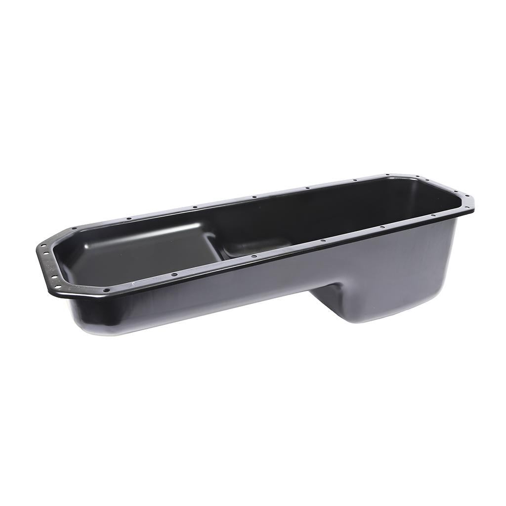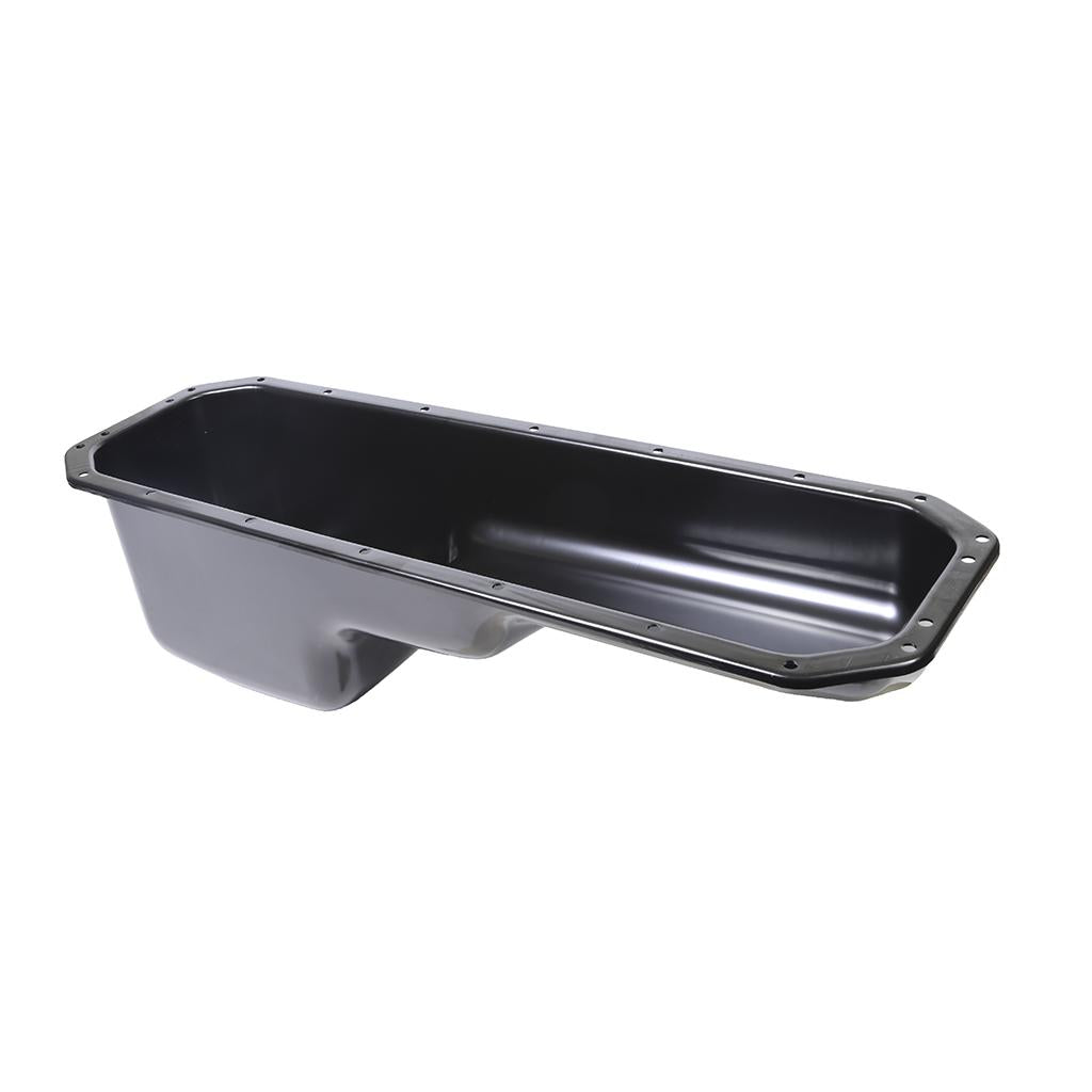 This engine oil pan is made of steel, finished in black and fits International DT466E / DT530E engines.