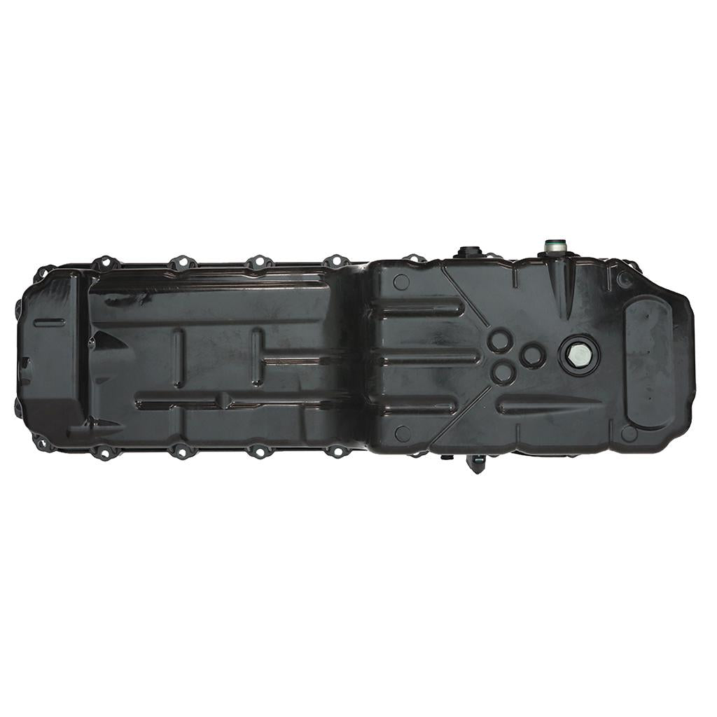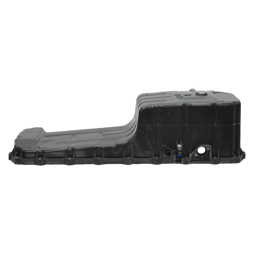 This front sump engine oil pan is made of plastic, finished in black and fits Mack MP8 and Volvo D13 engines.